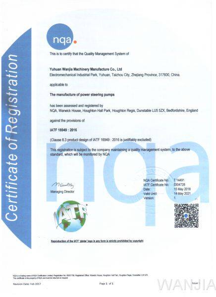 Yuhuan Wanjia Machine Manufacture Co., Ltd is a manufacturer who`s specialized in Power Steering Pump producing. We started to develop and produce automobile Power Steering Pump from 2000. We have bought some high technique CNC machines, which ensure products` quality and stability. We already develop more items for middle and small automobile. In accordance with the technical standard of national automobile industry: QC/T299-2000.